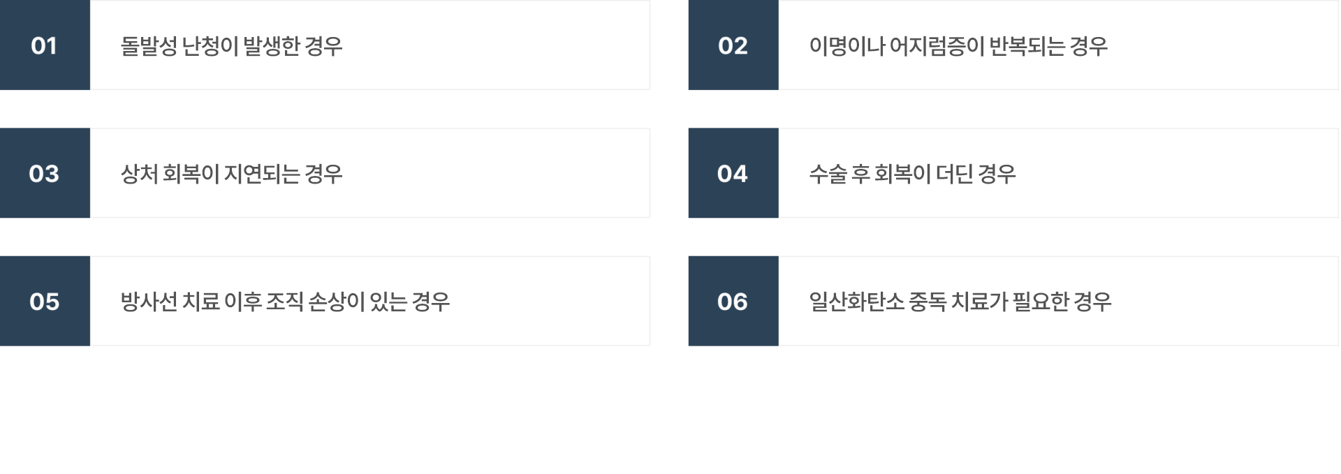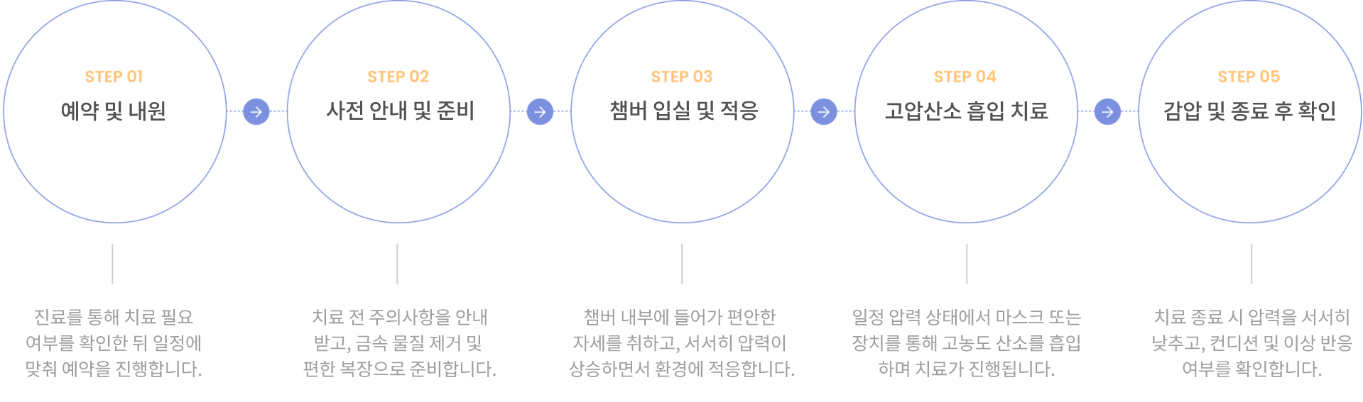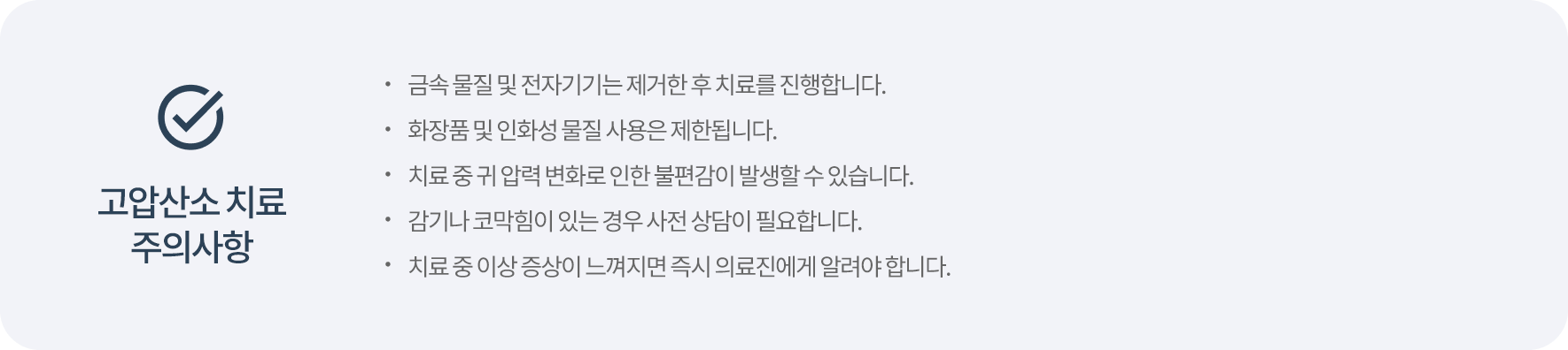 높은 압력 환경에서 순수 산소를 흡입해 체내 산소 공급을 증가시키는 치료입니다.